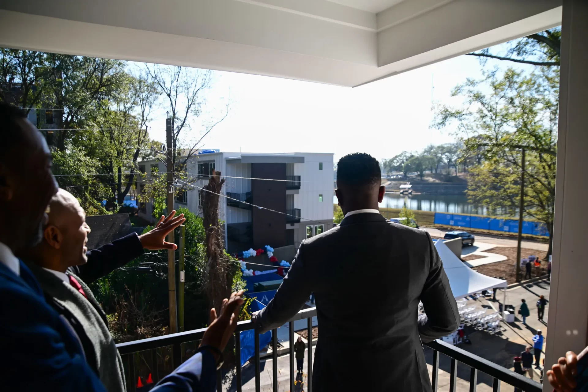 Atlanta Mayor Andre Dickens, and project partners—including Atlantica Properties, Partners for HOME, Niles Bolton Associates, The Beck Group, and Vantem—celebrated the Waterworks ribbon cutting on December 3, 2025, marking the completion of 100 modular studio units.